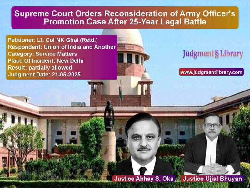 Petitioner Name: Lt. Col NK Ghai (Retd.).Respondent Name: Union of India and Another.Judgment By: Justice Abhay S. Oka, Justice Ujjal Bhuyan.Place Of Incident: New Delhi.Judgment Date: 21-05-2025.Result: partially allowed.